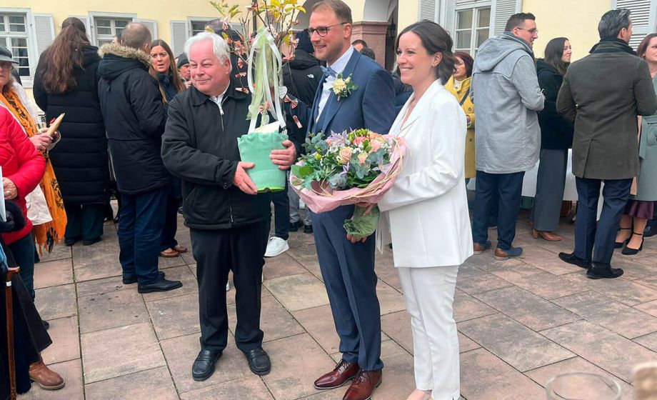 Die Musikvereinigung 1923 Neckarhausen e.V. durfte heute ein ganz besonderes Ereignis musikalisch begleiten: Unser Bürgermeister Florian König und seine (nunmehr Ehe-)Frau Larissa feierten ihre standesamtliche Hochzeit – und wir gratulierten mit einem musikalischen Hochzeits-Ständchen.