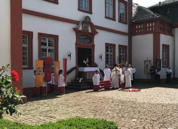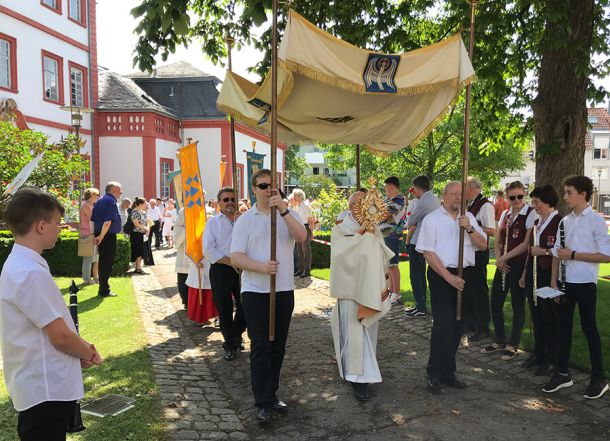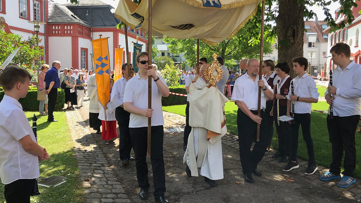 Auch 2018 begleitete die Musikvereinigung wieder die Ilvesheimer Fronleichnamsprozession musikalisch. Bei herrlichstem Sonnenschein und Temperaturen um die 30 Grad eine mitunter schweißtreibende Angelgenheit.