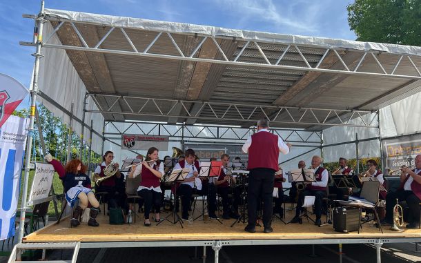 Bei strahlendem Sonnenschein zog am vergangenen Sonntag, 07.09.25 der Auftritt der Musikvereinigung Neckarhausen bei der Kerwe Neckarhausen die Blicke auf sich.