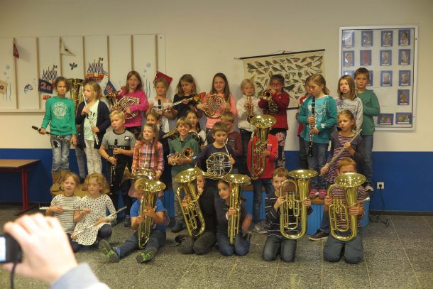 Instrumentenübergabe an die neue Drittklässler-Bläserklasse