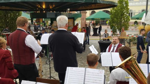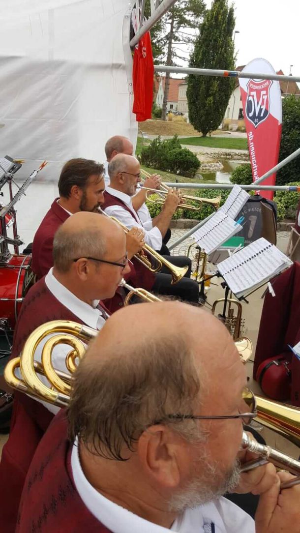 Traditionell sorgte die Musikvereinigung auch bei der diesjährigen Kerwe vor dem Schloss in Neckarhausen wieder für beste musikalische Unterhaltung zum Frühschoppen. Dies wurde uns durch spontane Tanzeinlagen sowie reichlich Applaus seitens der Kerwe-Besucher entsprechend gedankt.