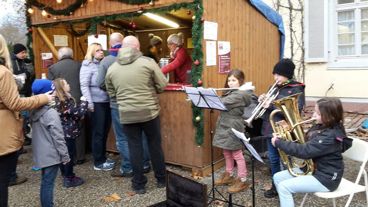 Der Kinderweihnachtsmarkt 2018 war trotz des schlechten Wetters wieder ein voller Erfolg. Zur adventlichen Stimmung an unserem Glühwein- und Kinderpunschstand auf dem Kinderweihnachtsmarkt haben auch Kinder aus der Viertklässler-Bläserklasse beigetragen.