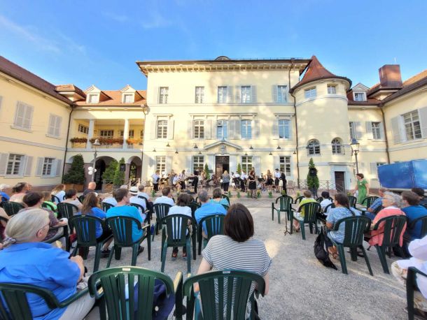 Klangvolles Konzert von Windstärke 08 im sommerlichen Schlosshof