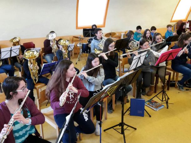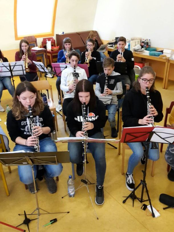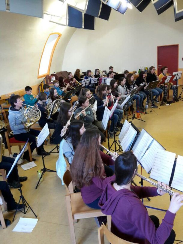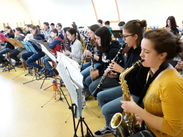 Neugierig auf die neuen Stücke für das im Juli geplante Konzert der Windstärke 08 gingen 37 junge Musiker zur Freude von Dirigent Csaba Asbóth mit Elan ans Werk. Die konzentrierte Probenarbeit – für die fortgeschritteneren Jugendlichen immerhin fast 15 Stunden – kostete Kraft und Ausdauer, machte aber trotzdem offensichtlich Spaß und gute Laune.