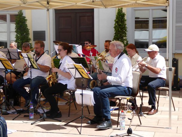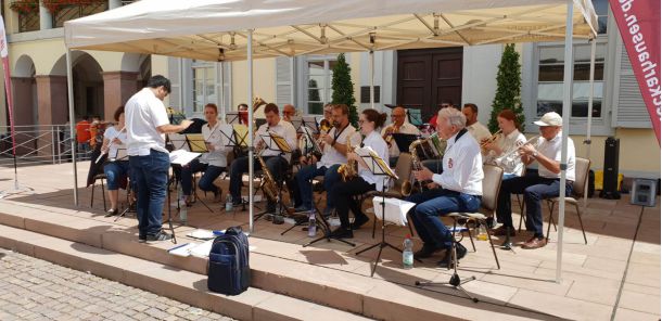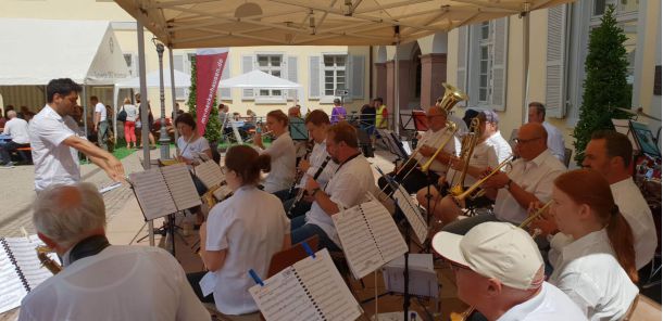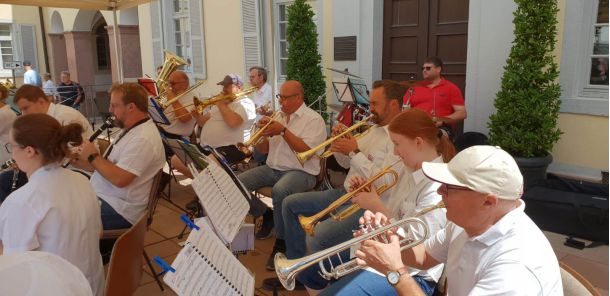 Am vergangenen Sonntag durften wir nach einer 2-jährigen Pause endlich wieder bei Rund ums Schloss in Neckarhausen auf der Schloss-Terrasse zum Frühschoppen spielen.