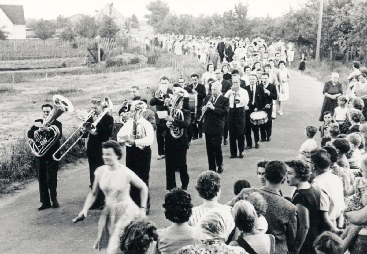 1953 feierte man das 30-jährige Bestehen mit einem großen Musikfest. Aufnahme der Kapelle aus dem Jahr 1953.