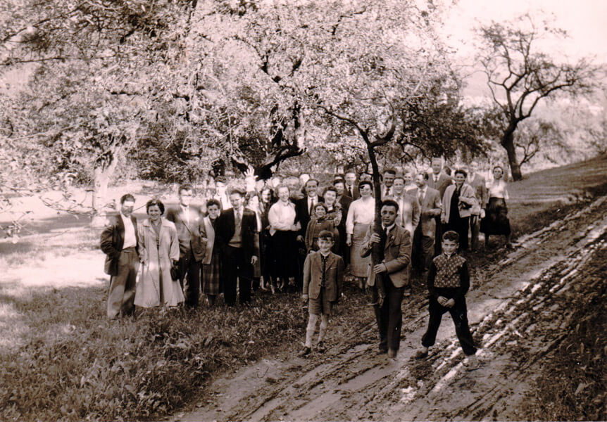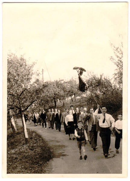 Ausflug nach Vorderheubach. Toni Zielbauer trägt die "Fahne".